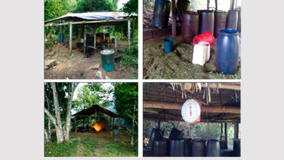 Los laboratorios estaban compuestos por construcciones rústicas, exteriores en plástico, color negro, y pisos en madera, camuflados en la espesa vegetación propia de la zona, como resultados de la operación se hallaron 3.305 galones de insumos líquidos y 1.115 kilogramos de insumos sólidos.
