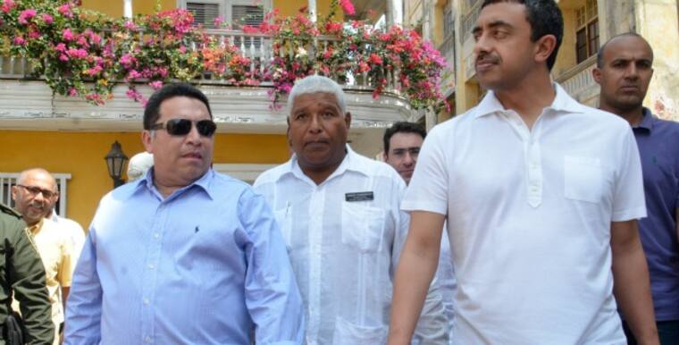En dos aviones, uno para él solo y otro para su comitiva llegó hoy en la tarde a Cartagena el hijo del jeque de Emiratos Árabes, Abdullah bin Zayed Al Nhayan, quien funge como Ministro de Relaciones Exteriores de su país.