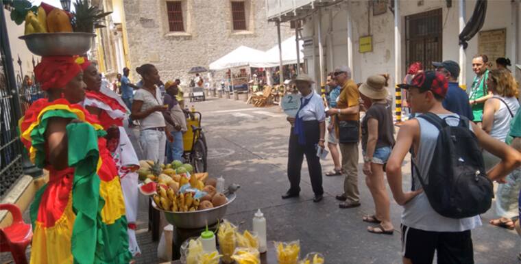 La matrona de las ventas de frutas, la negra Angélica Cáceres, a quien desde los 10 años la trajeron de San Basilio de Palenque a vender a las calles de Cartagena, espera que durante estos días los turistas de los buques se animen a comer más sus manjares.