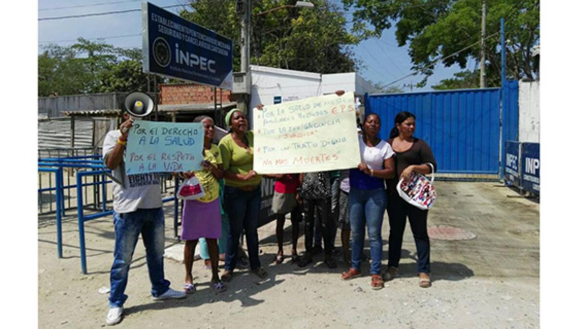 A raíz de la muerte a las 5:00 de la mañana del lunes del recluso de la Cárcel San Sebastián de Ternera, Jaime Dimas Guerrero, quien según sus familiares fue víctima de 'una úlcera que no le fue atendida de manera oportuna', allegados de otros internos del centro penitenciario realizaron este martes un plantón de protesta para exigir mejoras en las prestación del servicio de salud.