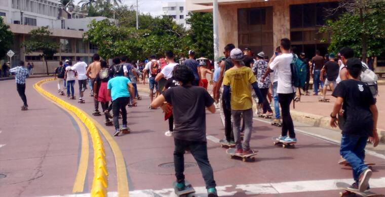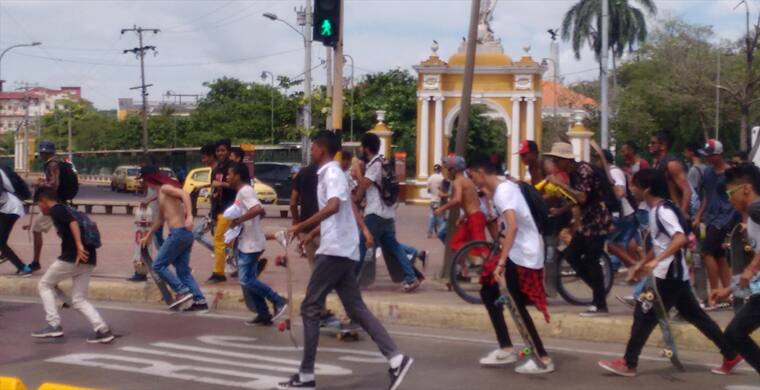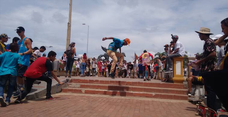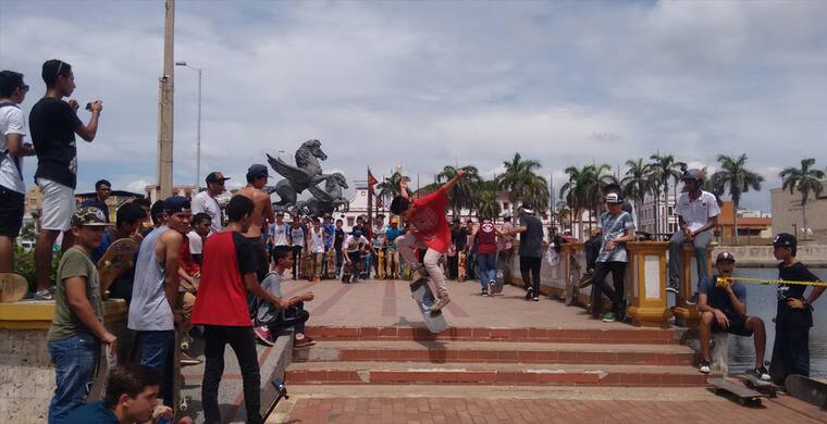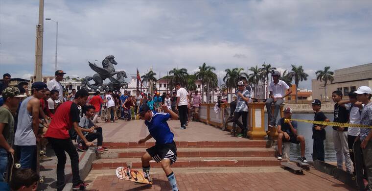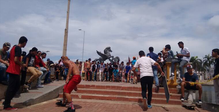 Decenas de seguidores del deporte extremo conocido con ‘skate’ recorrieron avenidas y plazas de la ciudad amurallada y extramuros a pleno sol para celebrar su día. Con sus patinetas realizaron sus saltos y vuelos y rindieron homenaje a los Pegasos, o caballos alados, en el muelle que lleva su este nombre, junto a la bahía de Cartagena, donde iniciaron hace unos años su club.