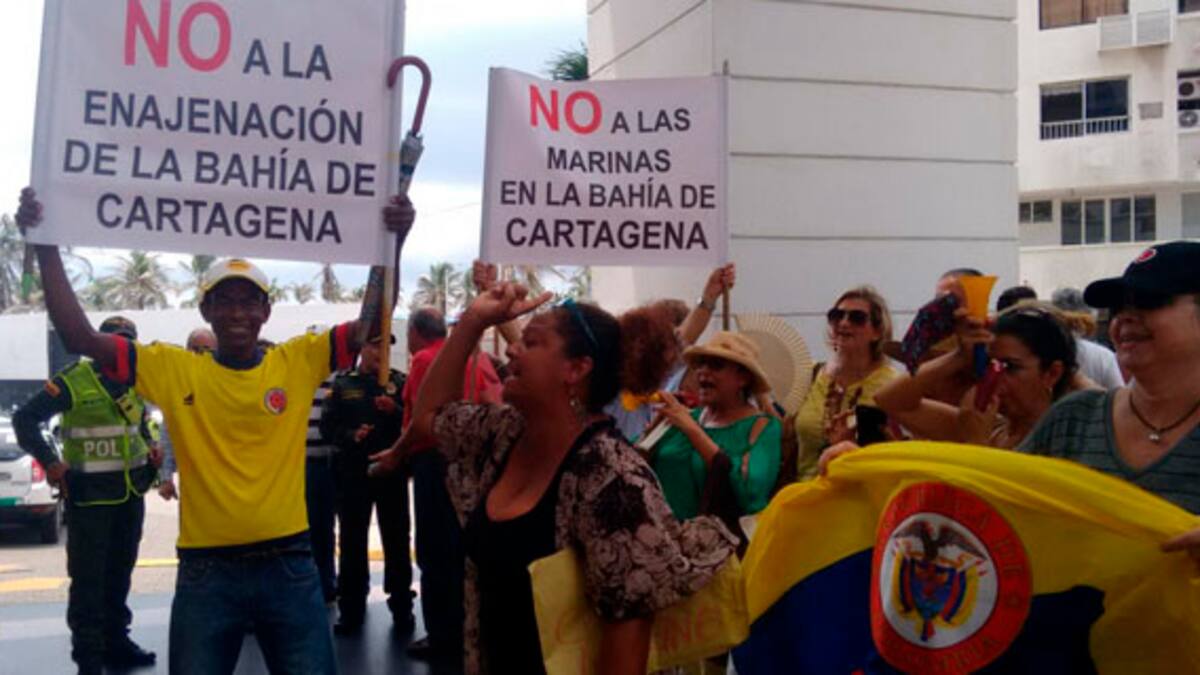 Los participantes del mitin no aceptan que la bahía 'se privatice' y termine, según ellos, afectando el entorno ambiental y residencial de Bocagrande y Castillogrande.
