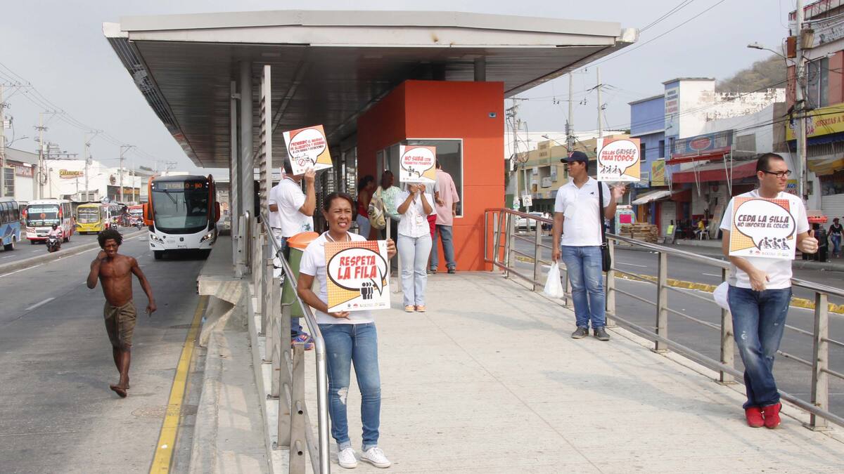 El Patio Portal del Transcaribe estará listo en un mes, informaron el alcalde Manuel Vicente Duque; el gerente de sistema de transporte, Humberto Ripoll, y Arturo Cepeda, directivo del concesionario Calicanto, tras inspeccionar las obras que han 'avanzado' un 90%.