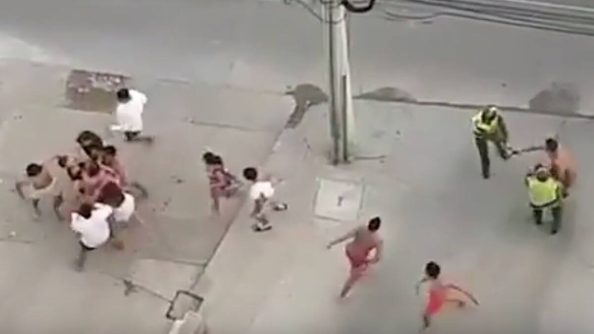 Por redes sociales circula el video que registró una riña en el paseo peatonal del barrio Castillogrande, en Cartagena, entre varios jóvenes que regresaban de un paseo en lancha y auxiliares de la Policía que se encontraban de vigilancia en el sector.