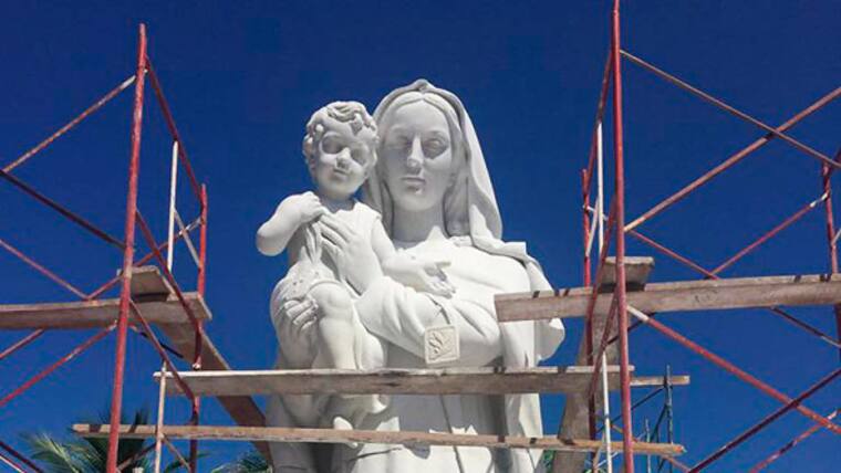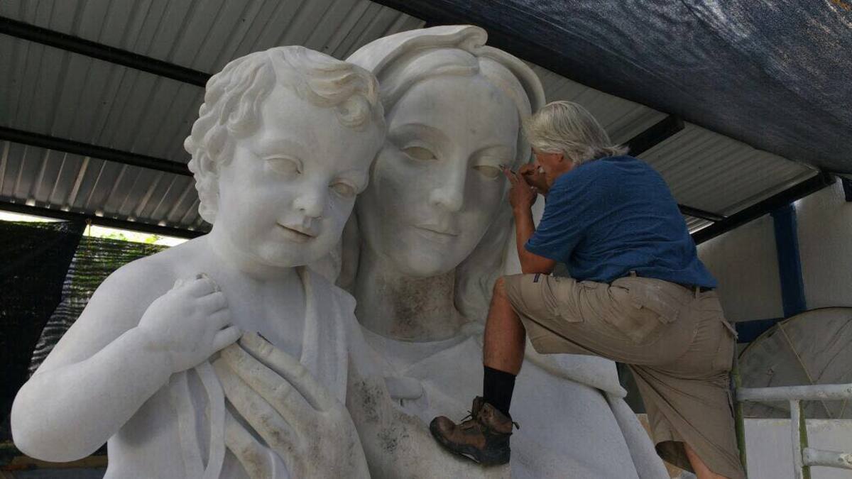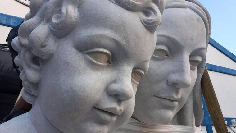 La virgen, divida en tres secciones con mármol de Carrara, tiene un peso de más de 35 toneladas, según explicó la gerente de Vélez & Santander.