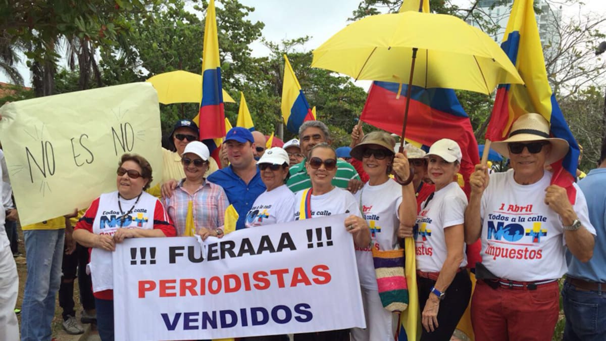 El tinte polémico de la marcha estuvo por cuenta de una pancarta en la que se lee 'fuera periodistas vendidos', en la que aparece posando junto a un grupo de personas el senador Fernando Araújo Rumié, y que ya ha sido rechazada por la Federación Colombiana de Periodistas, Fecolper.