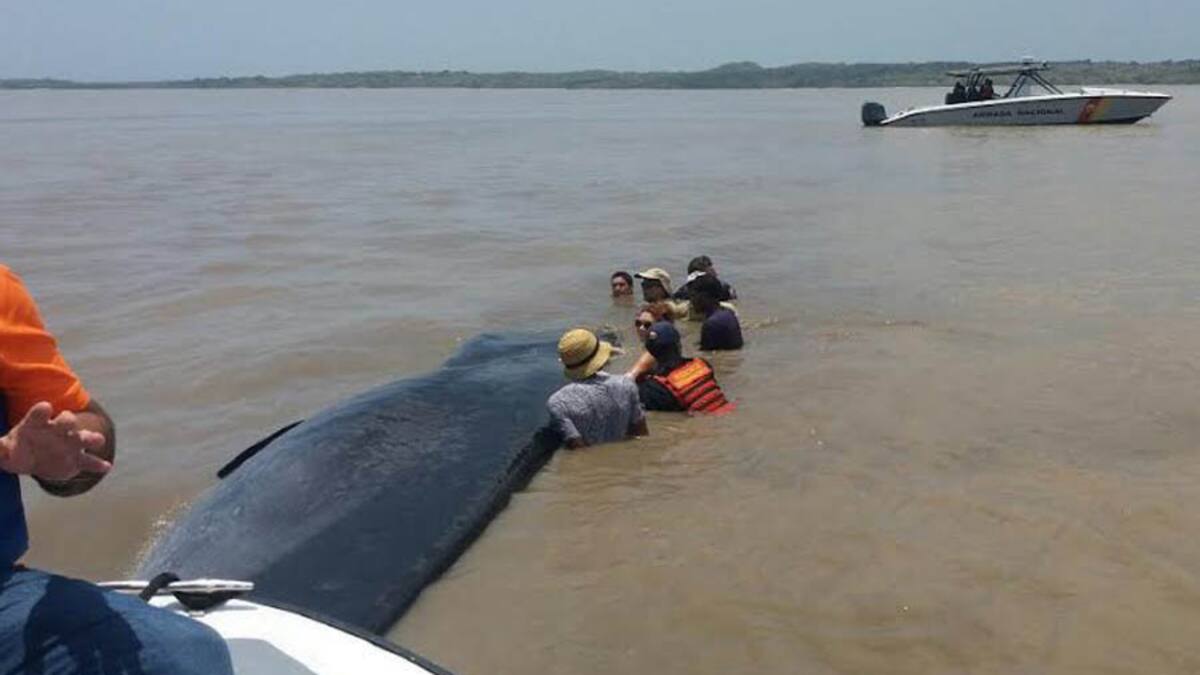 Al acercarse a la zona, en medio del sigilo, los residentes constataron que se trataba de una ballena encallada que, casi inmóvil, parecía haberse perdido de su grupo de compañeras en un inusual recorrido por aguas del Caribe.