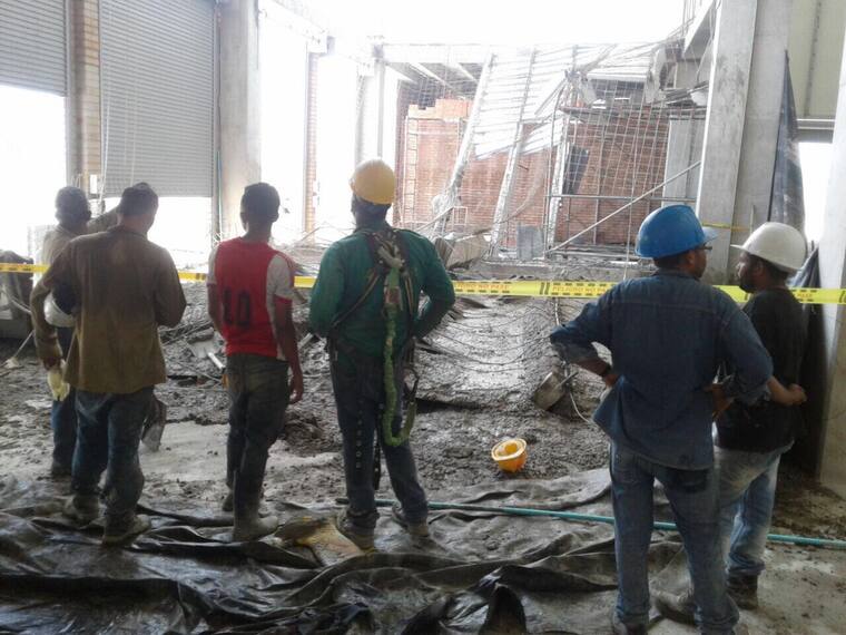 La Oficina de Gestión del Riesgo y Prevención de Desastres de Cartagena reportó a las 11:15 de la mañana de este sábado el colapso de una placa de concreto, aún de cemento fresco, en la zona franca de Villa Grande de Indias, de Turbaco, cerca del barrio Térnera de Cartagena.
