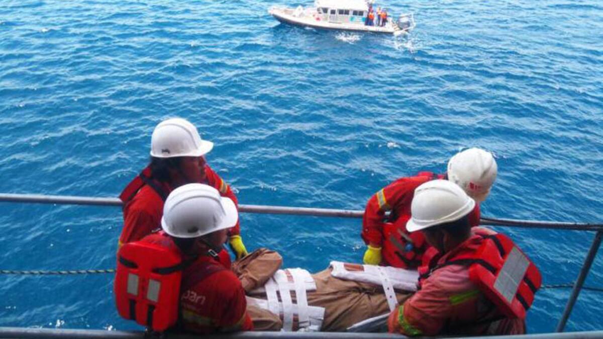 Con los primeros rayos del sol, la Armada Nacional dispuso de un helicóptero navalizado para realizar la evacuación aeromédica, puesto que el buque se encontraba a 200 millas náuticas de Cartagena; sin embargo, al llegar hasta el buque, e iniciar la maniobra de rescate, el equipo sufrió una avería, provocando la caída del rescatista y del segundo ingeniero del buque.