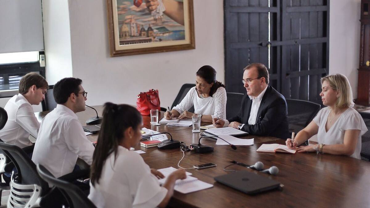El alcalde encargado de Cartagena, Sergio Londoño Zurek, se reunió con el director para Colombia de la Organización Internacional para las Migraciones (OIM), Alejandro Guidi, a quien se le dio a conocer cómo desde el Distrito de Cartagena se viene trabajando la atención a los venezolanos que llegan a Cartagena.