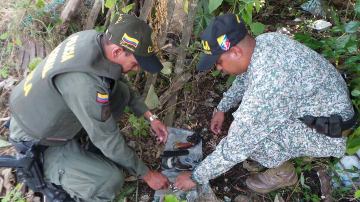 En esta oportunidad, miembros del Gaula, en el municipio de Tiquisio, encontraron una caleta con dos revólveres calibre 38, además de 32 municiones. También hallaron una granada de fragmentación M-26; el arsenal fue hallado enterrado en un sector enmontado cercano al matadero municipal.