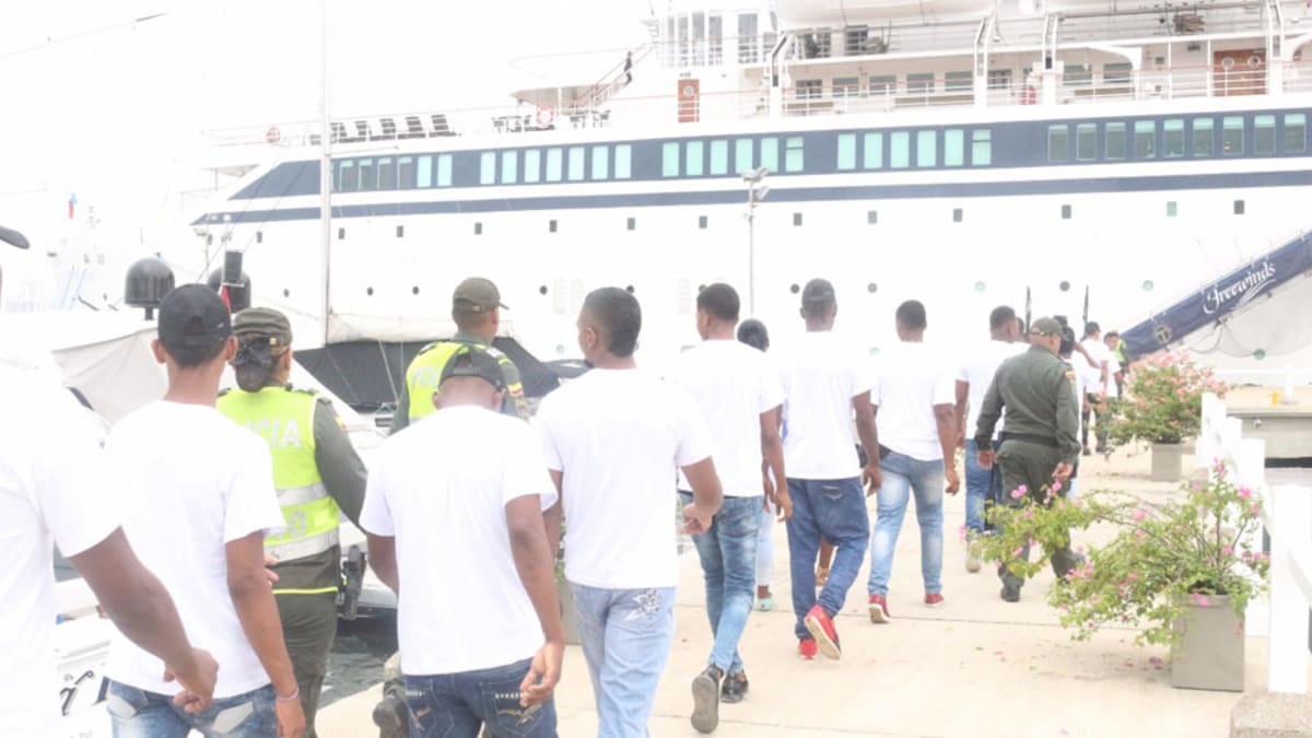 Desde 6 la mañana, en el Parqueadero del Coliseo de Combate, tres buses de la Policía Nacional aguardaban la llegada de un centenar de jóvenes residentes en los barrios Olaya Herrera y la Arrocera para ser trasladados hasta el Muelle de Edurbe en el barrio Manga, donde abordaron este crucero y fueron recibidos por el capitán de Puerto Ken Weber, y su Tripulación.