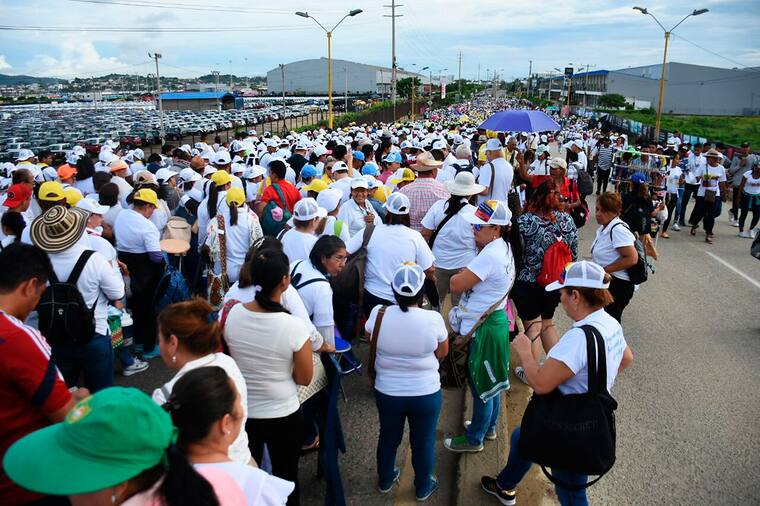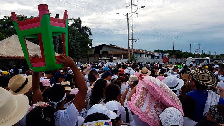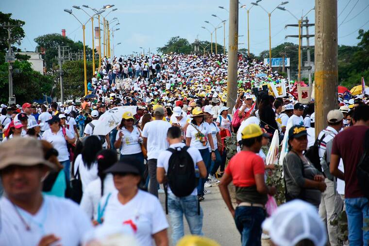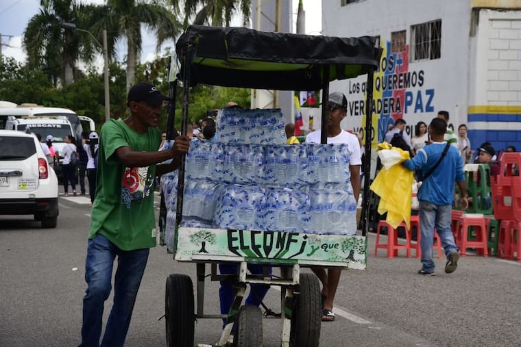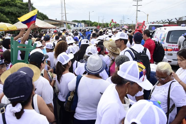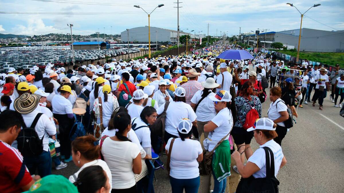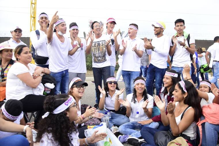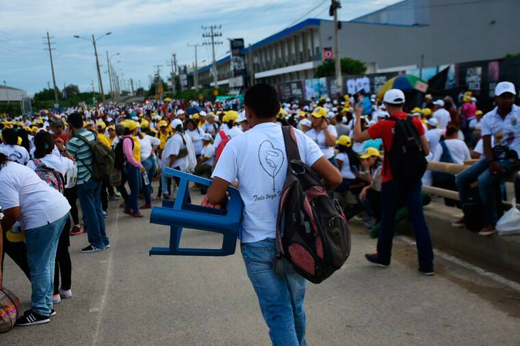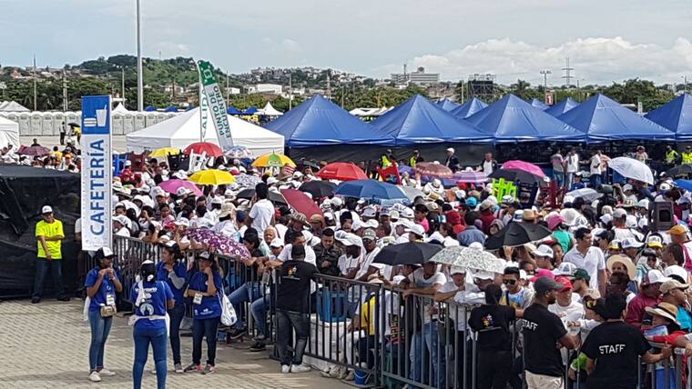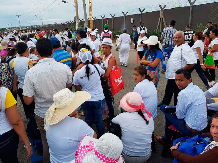 Congregaciones de todos los rincones de la Región Caribe hacen presencia en el muelle de Cartagena con la esperanza de encontrar un buen sitio que les permita ver de cerca al sumo Pontífice en la misa que oficiará cerca de las 4:30 de la tarde.