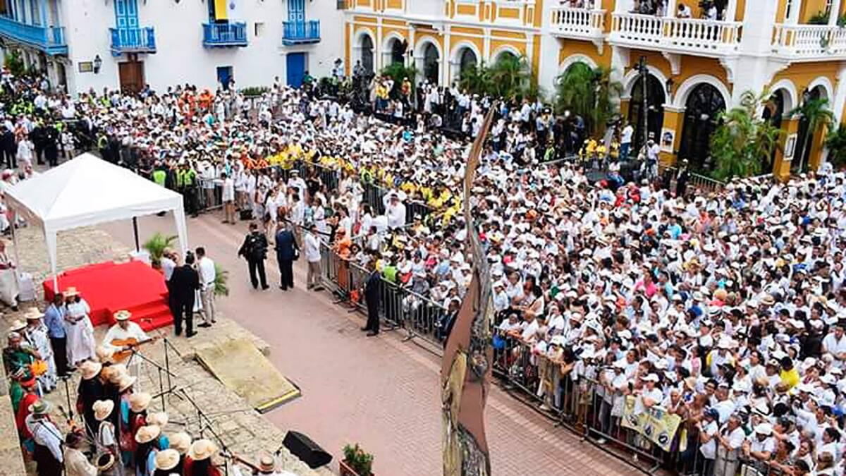 Atiborrada y esperando el mensaje del Angelus se encuentra la plaza de San Pedro Claver.
