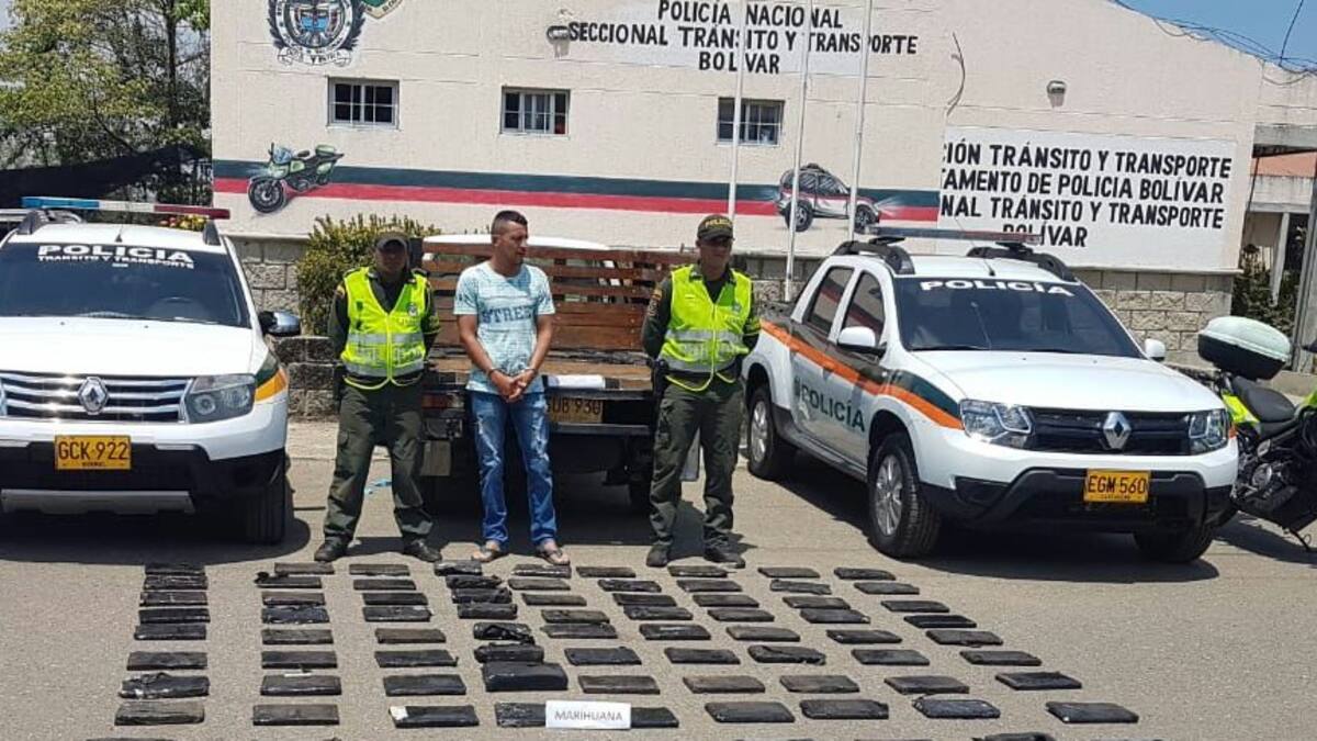 En una improvisada caleta, en el platón del piso de una camioneta, la Policía de Bolívar halló 160 paquetes que contenían marihuana prensada tipo cripy, cuyo peso total asciende a unos 80 kilos. En el operativo fue capturado Luis Carlos Fernández Cruz, de 37 años.