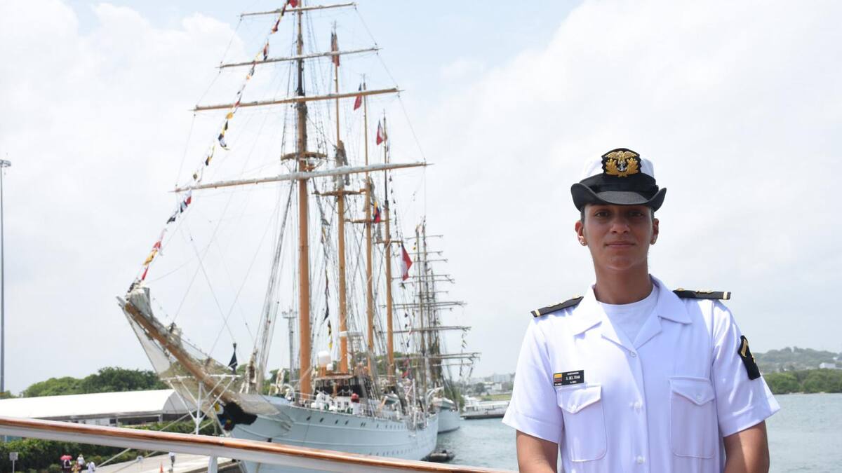 'El haber navegado con solo mujeres es una experiencia muy grande porque de ellas uno aprende mucho. Ellas son capaces y me demostraron que tenían las condiciones para realizar las maniobras que nos pedían', comenta el cadete con orgullo y emocionado de haber pisado tierra firme en Cartagena recientemente en el marco del Sail donde lo esperaba su familia.