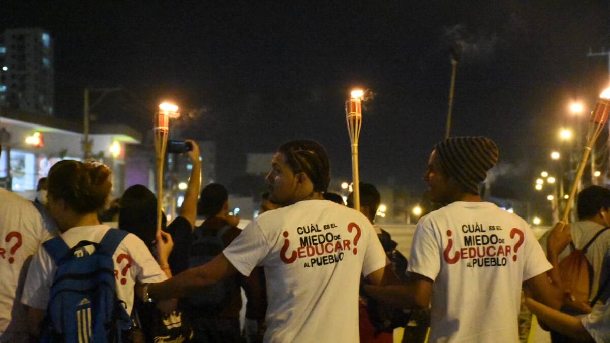 Los estudiantes de las universidades públicas y los institutos tecnológicos de la ciudad marcharon con antorchas para exigir que el Gobierno Nacional destine más recursos para mejorar la calidad de la educación en el país.