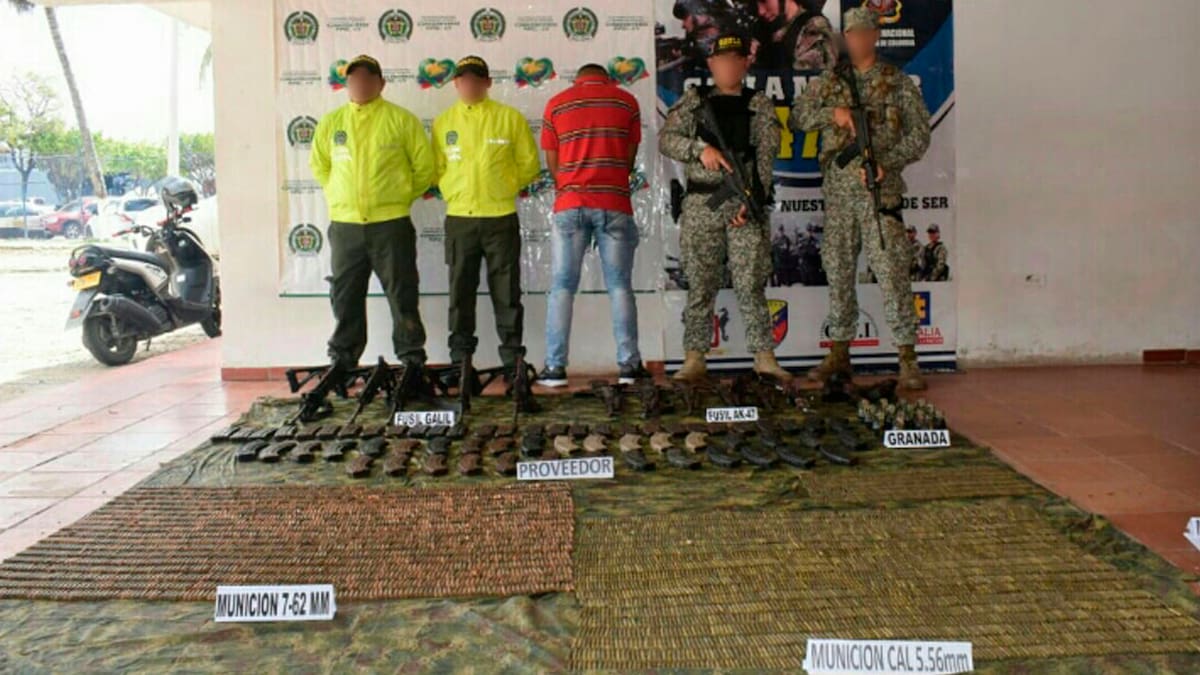 Luego de varias semanas de una minuciosa investigación, seguimiento e interceptación de llamadas telefónicas, las autoridades lograron dar con la ubicación de la finca donde al parecer se ocultaban varios recipientes que contenían ocho fusiles AK47, cinco fusiles Galil calibre 5.56, 14 granadas de mano, 5.465 cartuchos entre calibres 7.62 y 5.56, 64 proveedores y material de intendencia perteneciente a Fuerzas Militares.