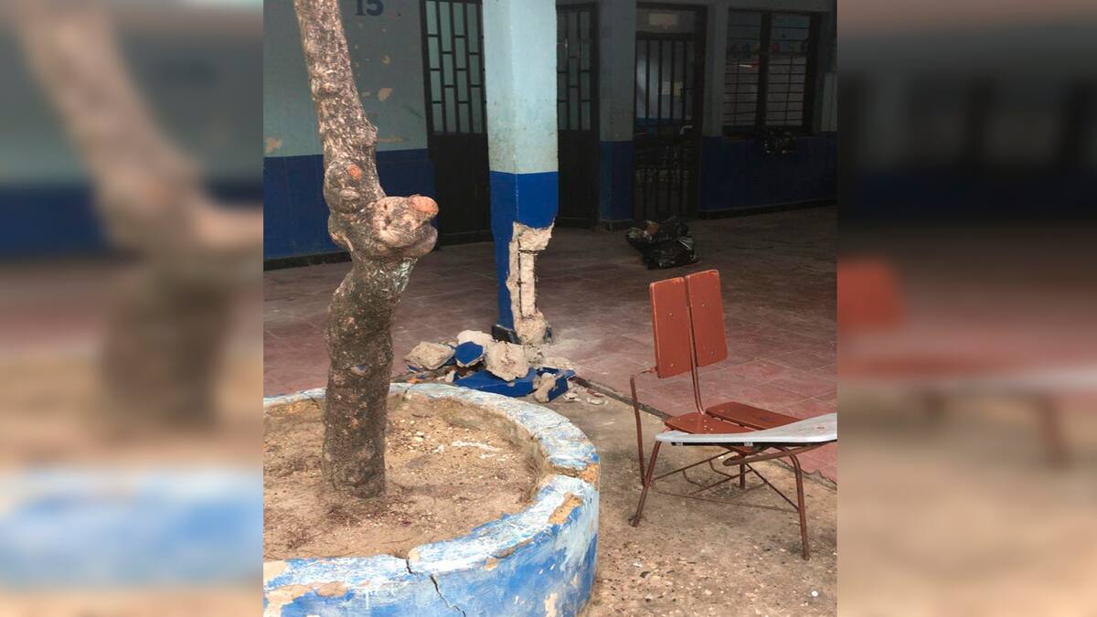 La comunidad educativa denunció que las columnas la edificación, que tiene más de 40 años, 'penden' de un hilo y los pisos de las aulas y de los dos patios, se encuentran levantados y las paredes resumidas.