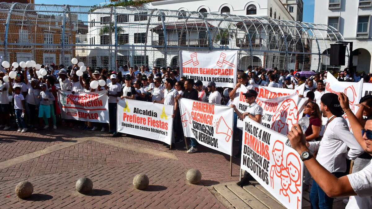 Los más de 300 trabajadores que laboran en las discotecas del centro histórico de Cartagena, se plantaron frente a la Alcaldía de la ciudad, para pedirle al Distrito que reconsidere el horario de cierre de los establecimientos y discotecas de este sector, indicando que sus ventas han disminuido hasta en un 30% lo cual ha obligado a muchos a pensar en cerrar sus negocios.