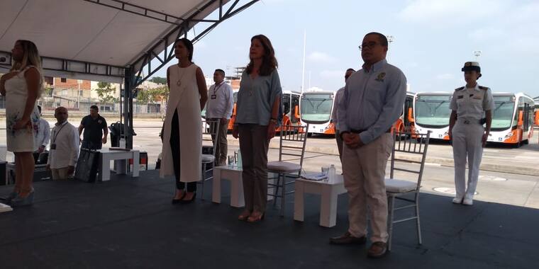 La Vicepresidente de la República Marta Lucía Ramírez, la Ministra de Transporte Ángela María Orozco y su Viceministro Juan Camilo Ostos se movilizaron hasta la estación Patio Portal en el barrio Urbanización Anita, en uno de los nuevos buses que Transcaribe pondrá a disposición a partir de hoy.