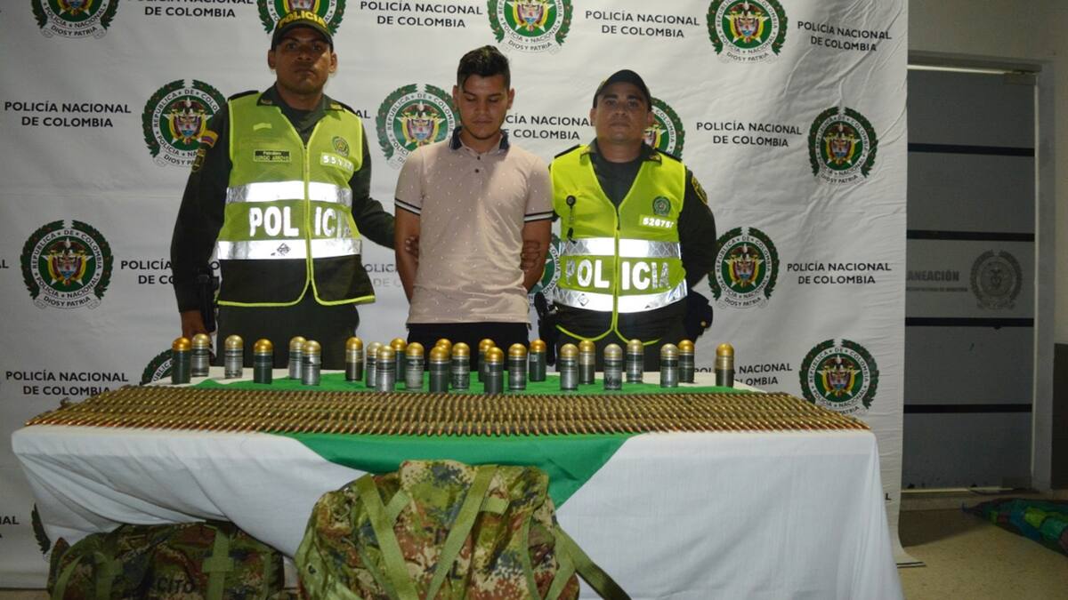 La Policía de Montería capturó este domingo a un hombre con varios morrales en cuyo interior fue hallado material de guerra que pretendía enviar como encomienda desde la terminal de transporte de la capital de Córdoba.