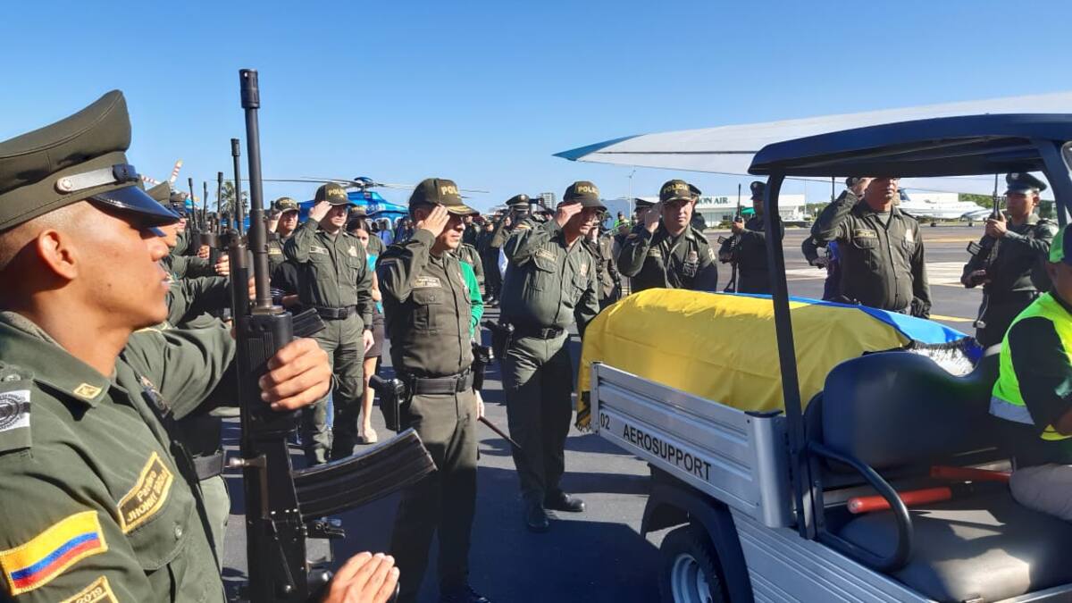 En la ceremonia cumplida en el aeropuerto Rafael Núñez, integrantes de la Policía Metropolitana de Cartagena le ofrecieron además un minuto de silencio. Minutos después, el cuerpo ue trasladado hasta Villavicencio, de donde era oriundo.