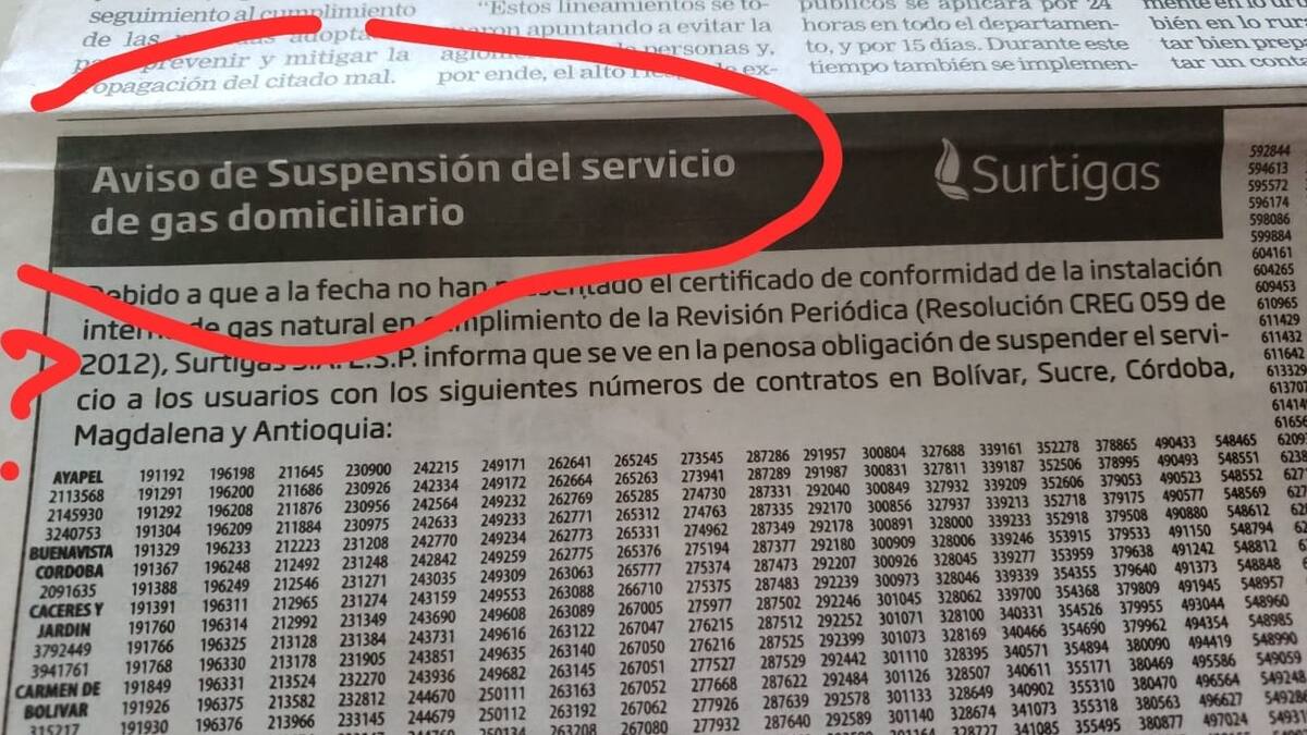 Esto porque luego de conocer que Surtigas informara que suspenderá el servicio a miles de usuarios en Cartagena, municipios de Bolívar, la costa Caribe y Antioquia.