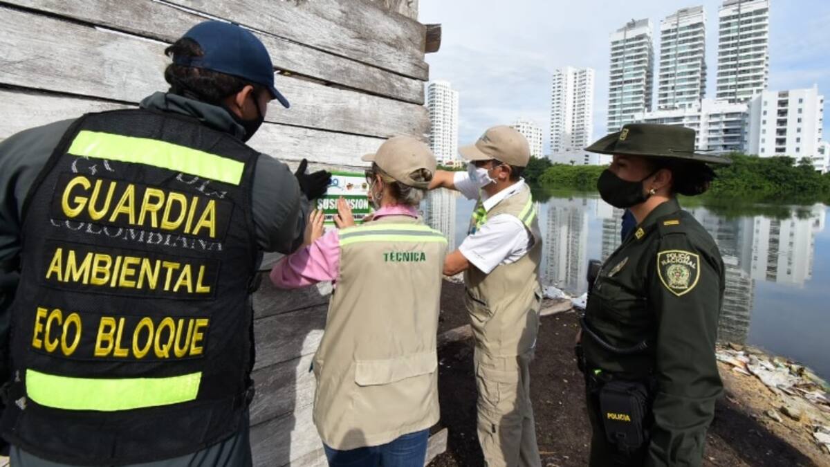 Miembros del Establecimiento Público Ambiental, EPA Cartagena; de la Guardia Ambiental, la Dirección General Marítima y Portuaria, Dimar, Policía Metropolitana, y Umata, suspendieron una cría de gallos y un aserradero en 'la Gallera', sector Papayal en Torices, el cual presenta una problemática de relleno en el caño y Laguna de El Cabrero desde hace años.