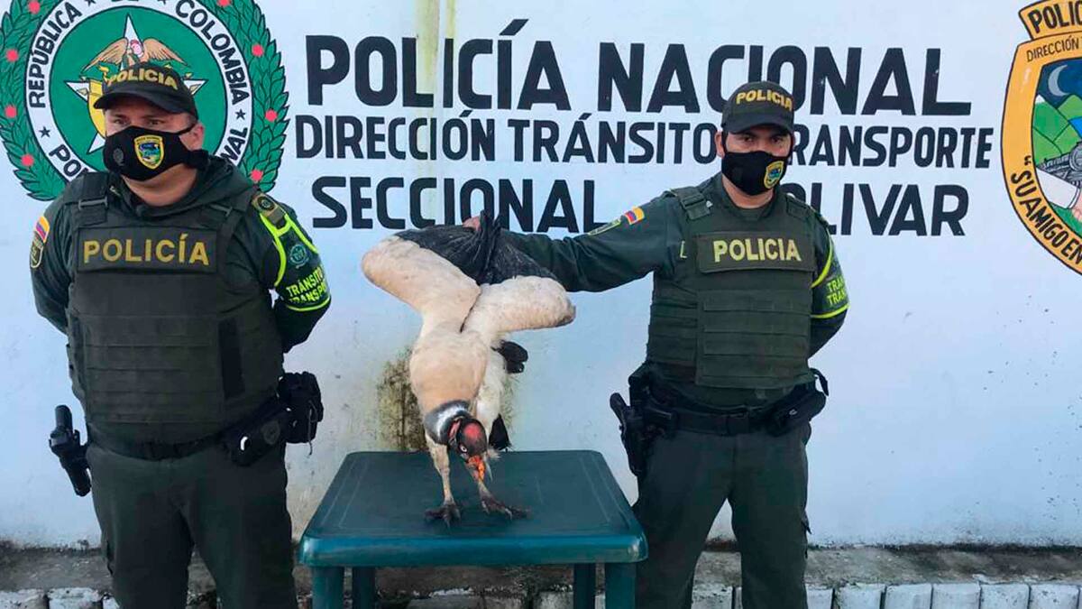 Mientras realizaban labores de patrullaje y control en las carreteras de Bolívar, la Policía Nacional rescató a un cóndor real que debido a las heridas que presentaba en una de sus patas, le impedía alzar el vuelo.