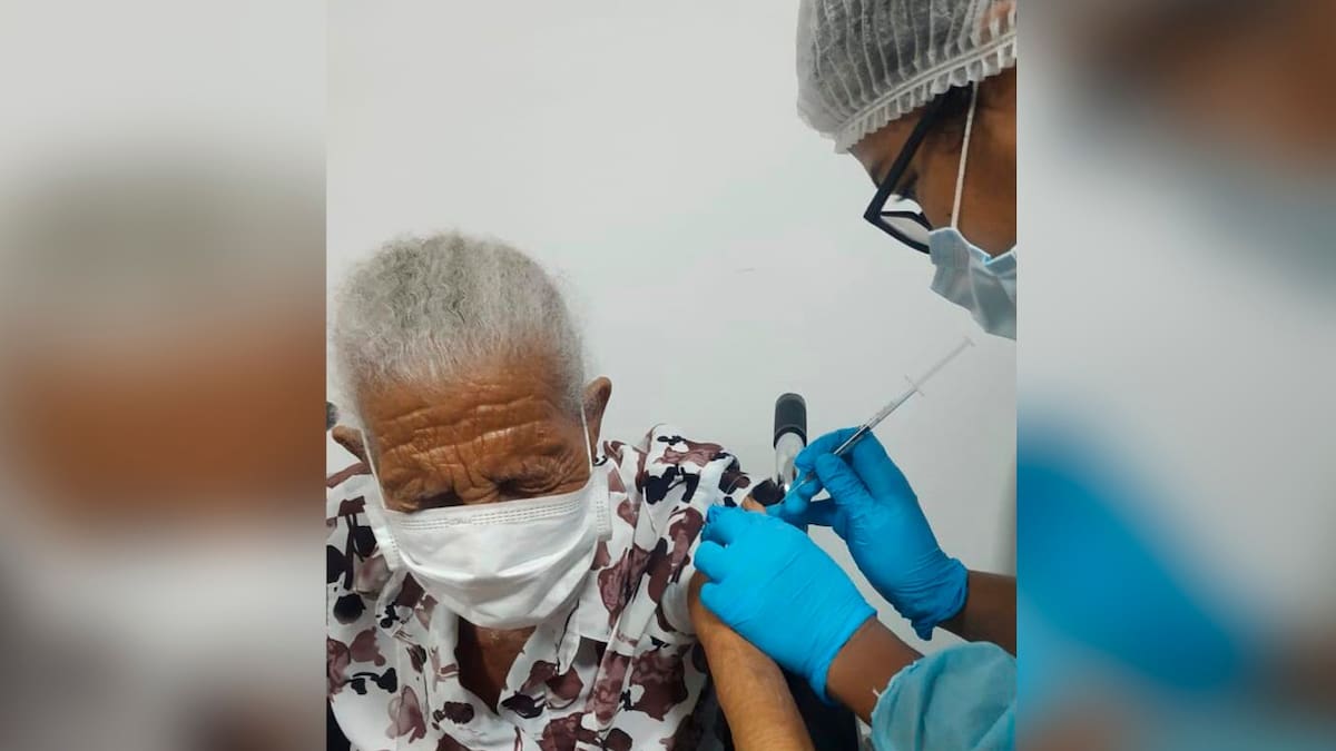 En el corregimiento de Santa Ana, en la isla Barú, la primera en recibir el biológico fue Celestina Cardales, de 101 años.