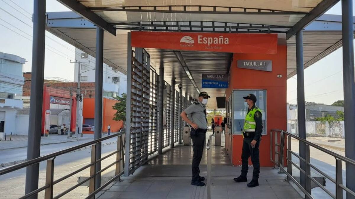 Unidades de la Policía Metropolitana de Cartagena vigilaban ayer todas las estaciones del sistema de transporte masivo, Transcaribe, en la reanudación del recaudo electrónico, luego del acuerdo pactado entre Alcaldía y la concesionaria.