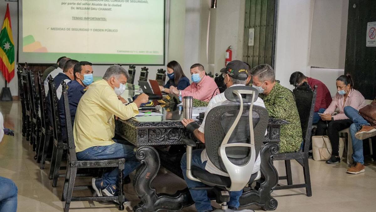 En consejo de seguridad, el alcalde William Dau Chamat socializó a las autoridades militares y de policía cómo serían las nuevas medidas del toque de queda en la ciudad.
