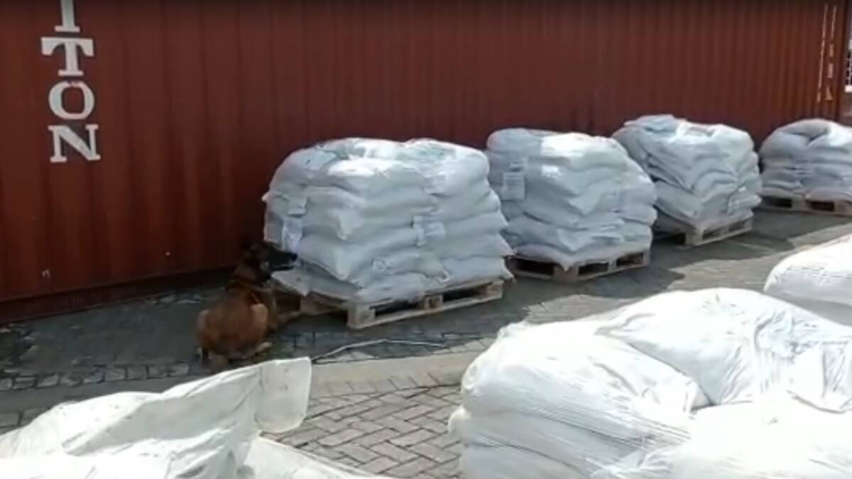 'Al pasar por uno de los contenedores cargado con 38 sacos de fibra con mercancía de tipo exportación, ‘Cusco’ dio la señal de alerta a su guía, esto permitió a los demás uniformados realizar una inspección física bulto por bulto y luego, en los que hallaron 599 paquetes rectangulares de varios colores', indicó la Policía.