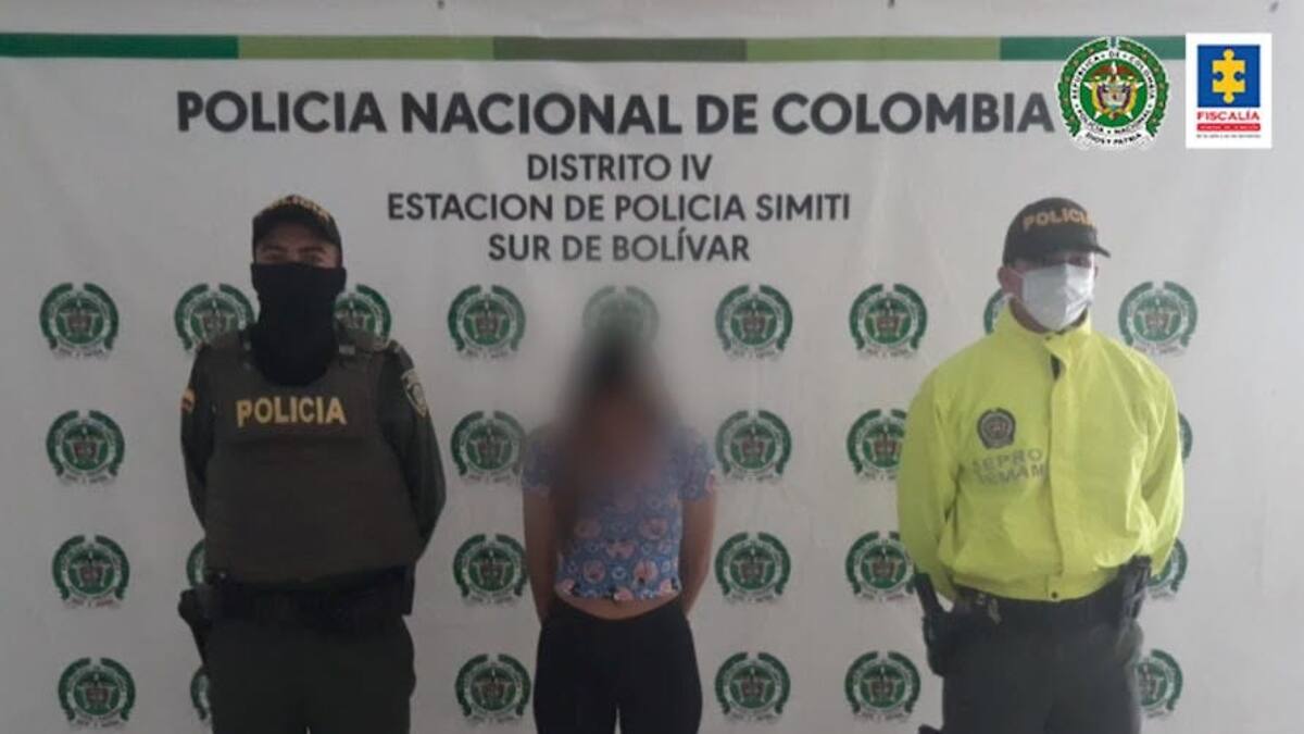 La hoy asegurada fue capturada por la Policía en cumplimiento de orden judicial en el municipio de Simití, Bolívar. No aceptó los cargos imputados por la Fiscalía.