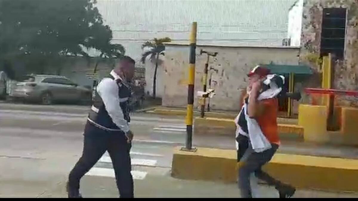 Durante la tarde del pasado jueves, en el marco del Paro Nacional, varios reguladores de tránsito y miembros del comité anti peajes se enfrentaron a puños y patadas en uno de los peajes urbanos de Cartagena, ubicado en el sector de Parque América, zona industrial de Mamonal.
