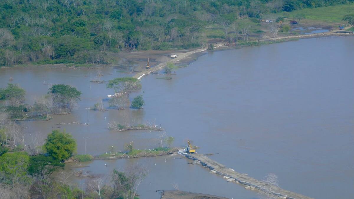 Al respecto, el director de la UNGRD, indicó que 'Seguimos trabajando del otro lado del río en donde hay una isla que se presentó por el rompimiento del río que tiene un total de 738 metros que van a intervenir con un canal que tiene 45 metros de ancho y 6 metros de profundidad. De esos 738 ya se tienen terminados 242, es decir, el 30 %, esperamos que antes de 20 días se pueda terminar y eso aliviará las intervenciones que se están haciendo sobre el rompimiento'.