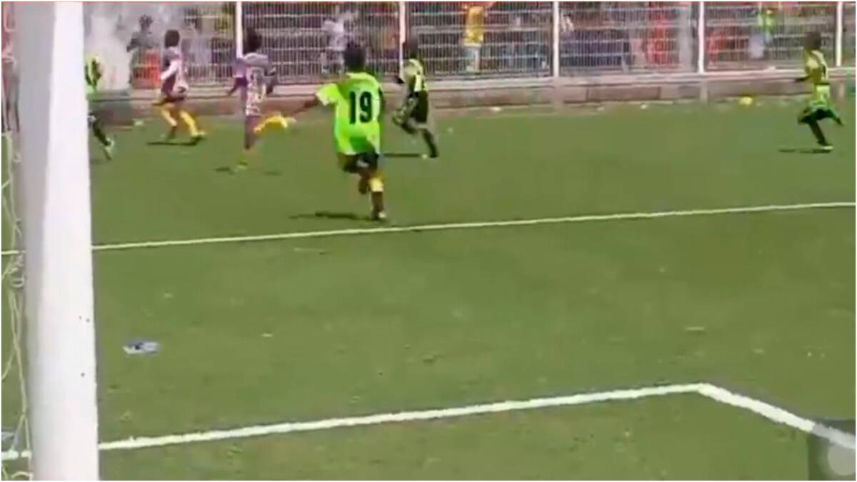 En las imágenes se observa cómo los niños empiezan a correr y a salir de la cancha desesperadamente, mientras al otro extremo del escenario deportivo, se desarrolla la riña que terminó con disparos al aire.