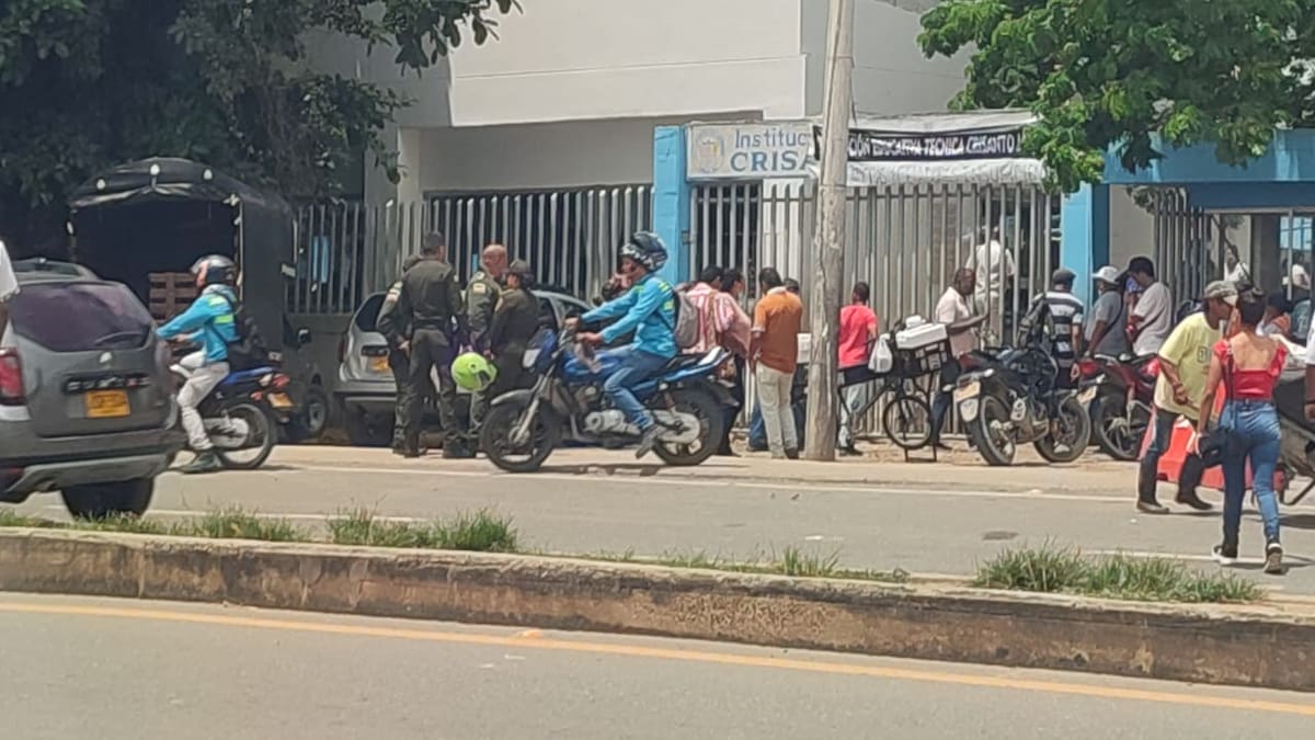 Un grupo de personas se aglomeró en las afueras de la Institución Educativa Crisanto Luque, en el municipio de Turbaco, Bolívar, para manifestar su inconformidad por la forma en la que fue organizado el primer 'diálogo regional vinculante', de los 50 que fueron programados por el gobierno de Gustavo Petro.