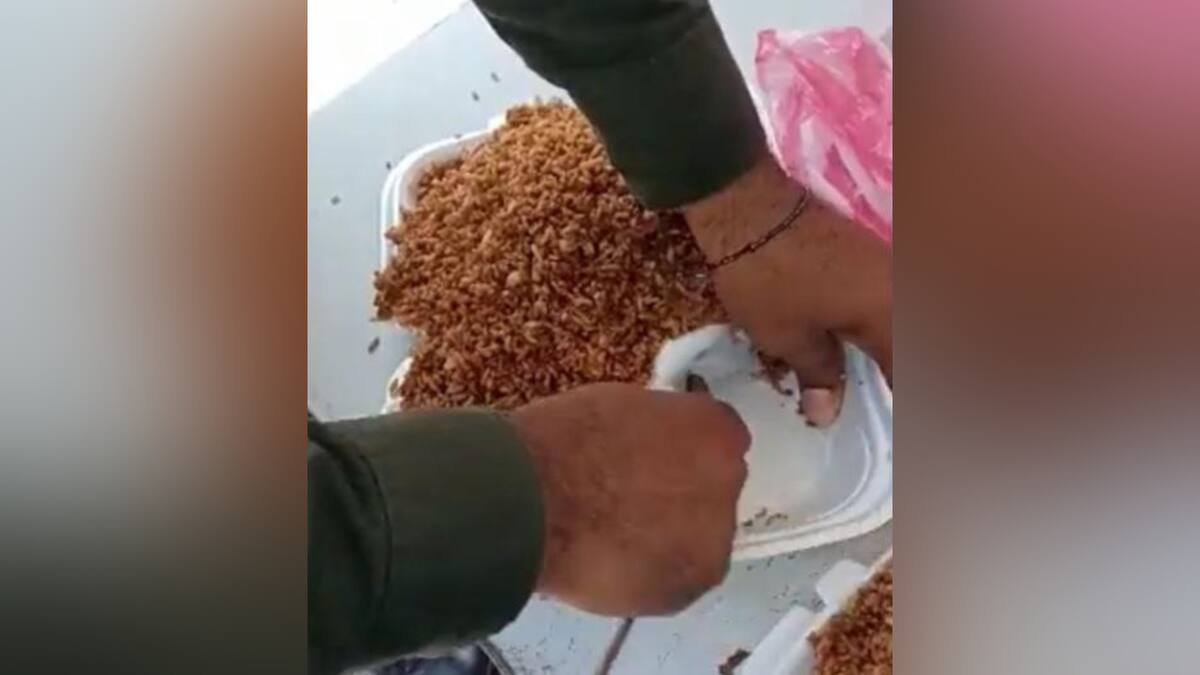 Luego de usar una cuchara para quitar los granos, uno de los uniformados procede a forzar la tapa del empaque de icopor, revelando así que esta cuenta con un 'doble fondo'. Posterior a quitar la falsa cubierta, se puede observar una bolsa repleta de lo que sería una mezcla de marihuana y coca, que se encontraba aprisionada y no se podía percibir a simple vista.