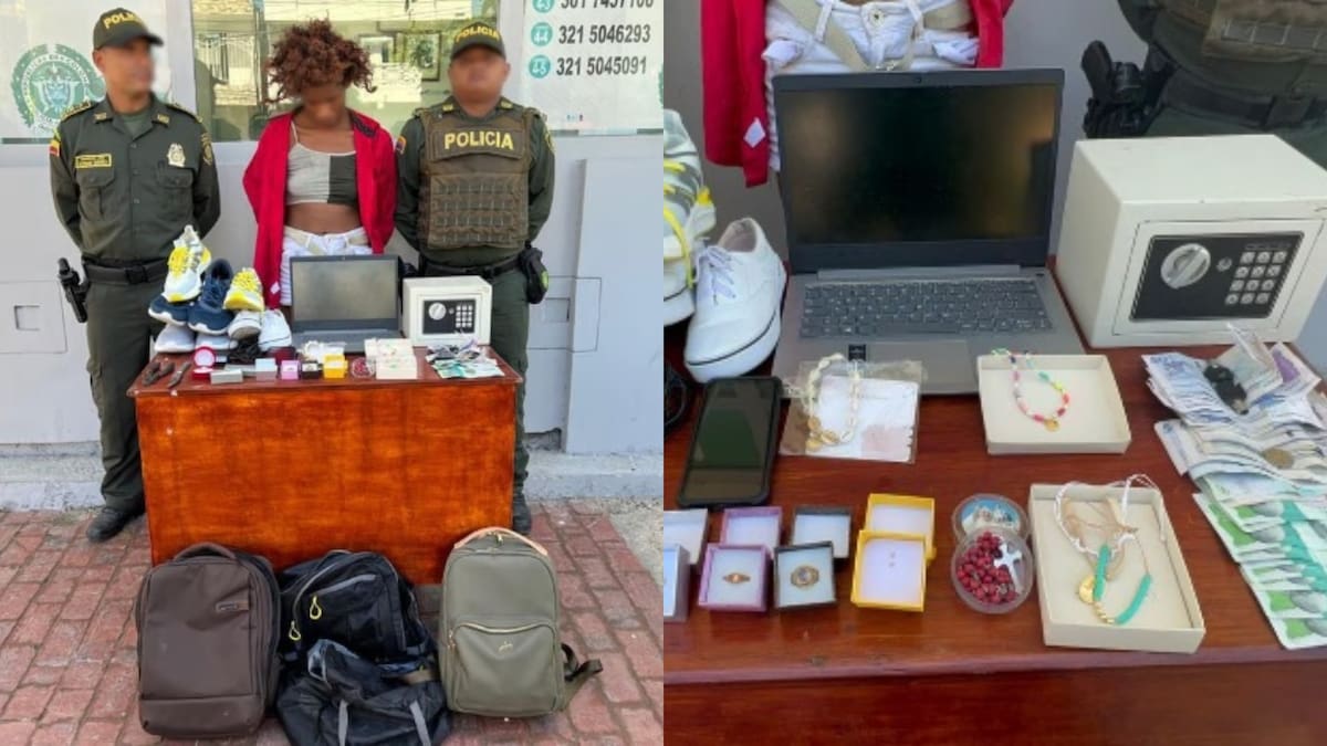 En su poder fueron encontrados anillos, cadenas de oro, zapatos, bolsos de reconocidas marcas y una caja fuerte con más de $6 millones de pesos en efectivo. Todos estos elementos estaban valorados en más de $20 millones de pesos.