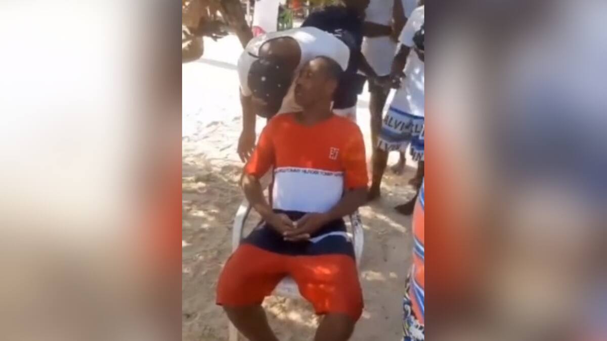 Ante esto, varios vendedores decidieron sentarlo en una silla y rodearlo para exigirle el dinero que les debía.