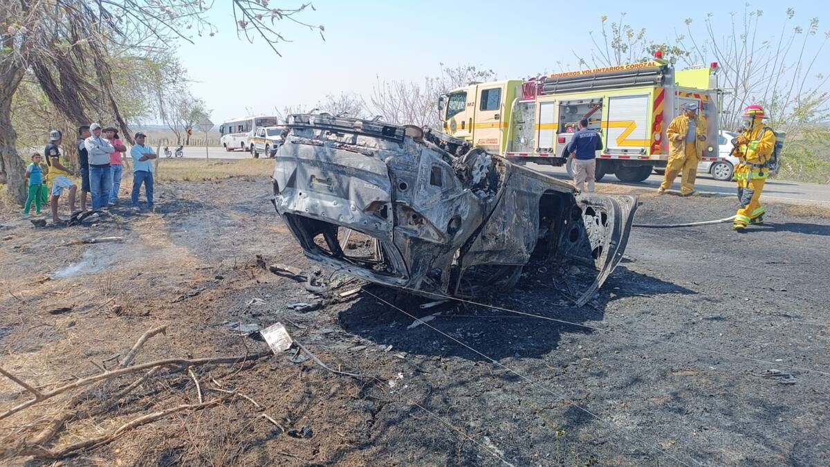 Según el reporte de las autoridades, la camioneta modelo 2011 era conducida por el odontólogo Javier Alcides Turizo Flórez, de 51 años, quien presenta quemaduras de primer grado en el brazo derecho.