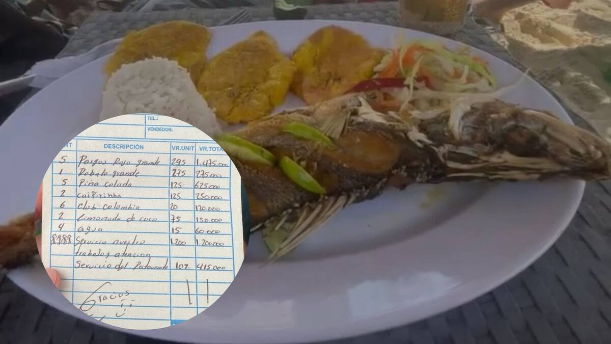A través de Twitter, una internauta reportó el atropello del que fueron víctimas sus amigos, durante una visita a playa Blanca, Isla Barú. La usuaria identificada como ‘Nice Spice’, en la red social, adjuntó una fotografía de la factura en la que se observa un cobro total de 4.500.000 pesos, por la compra de 5 pargos rojos, 1 robalo, 5 piña colada, 6 cervezas, 2 limonadas, 4 aguas y el servicio.