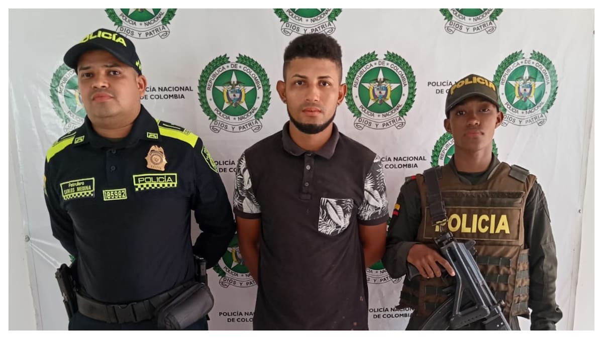Los capturados, de 25 y 20 años, fueron identificados como Didier Luis Jiménez Rebollo y Gustavo Adolfo Villadiego Méndez. Ambos fueron dejados a disposición de la Fiscalía General de la Nación por los delitos de hurto y porte ilegal de armas de fuego.