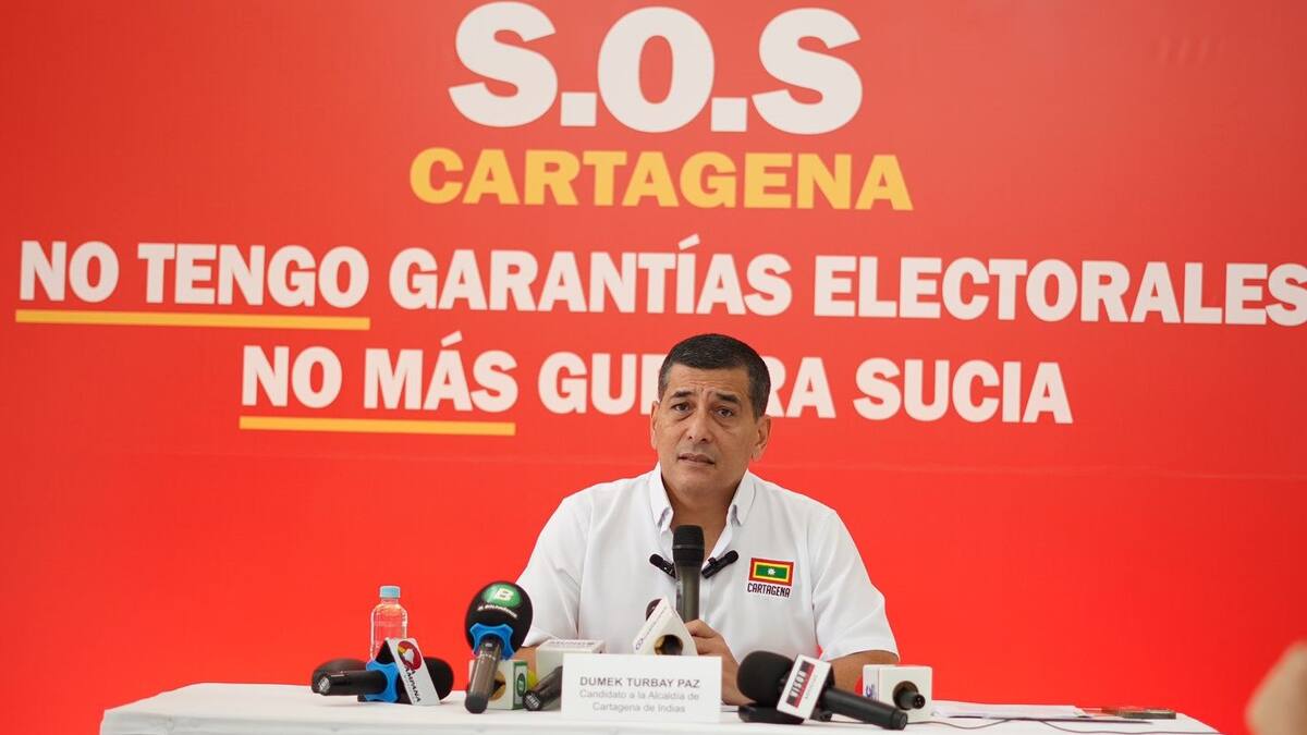 El abogado y exgobernador de Bolívar, Dumek Turbay Paz, que ahora aspira a la alcaldía de Cartagena, denuncia que no hay garantías en la capital de Bolívar para el debate electoral por los atropellos de parte del actual mandatario William Dau y por ello pide que lo declaren impedido y designen alcalde ad – hoc.