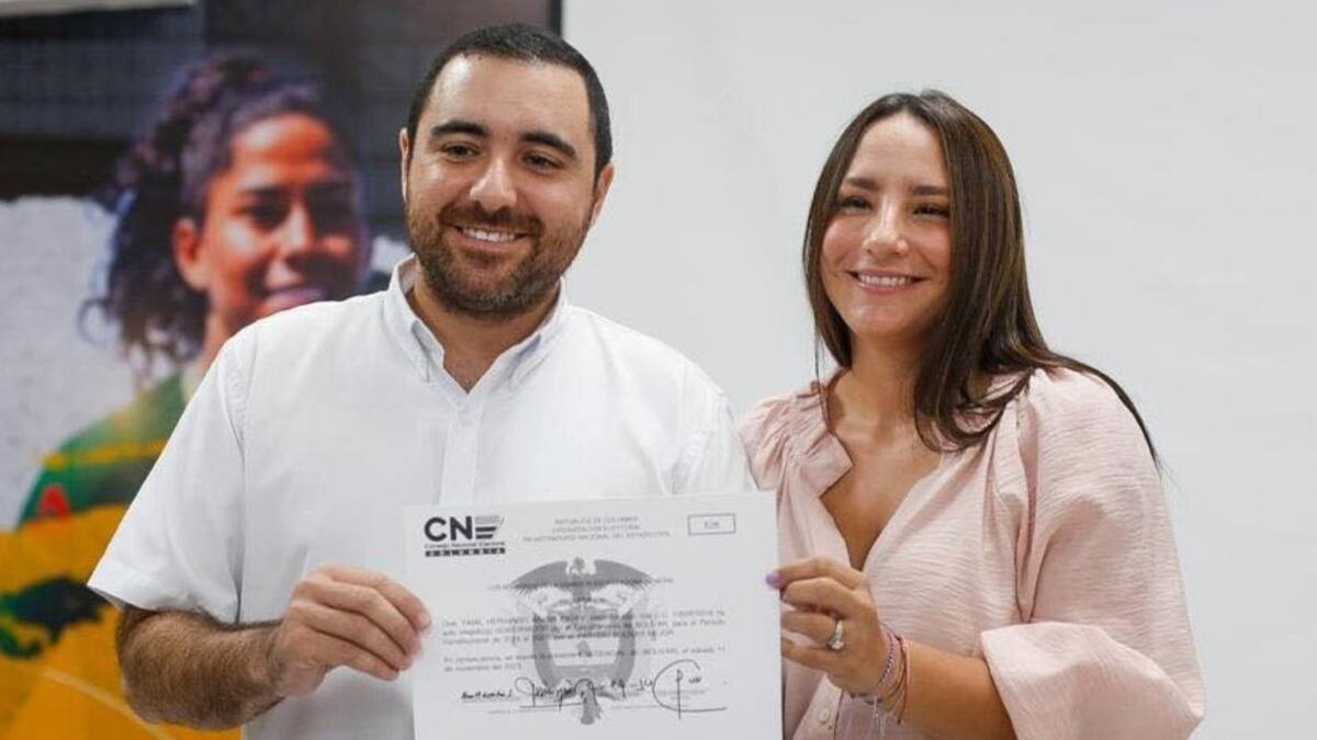 En el Coliseo Bernardo Caraballo de la ciudad de Cartagena, donde se cumplieron los escrutinios del departamento de Bolívar, recibió este martes 14 de noviembre la credencial de gobernador electo para el período 2024-2027 Yamil Arana Padauí.