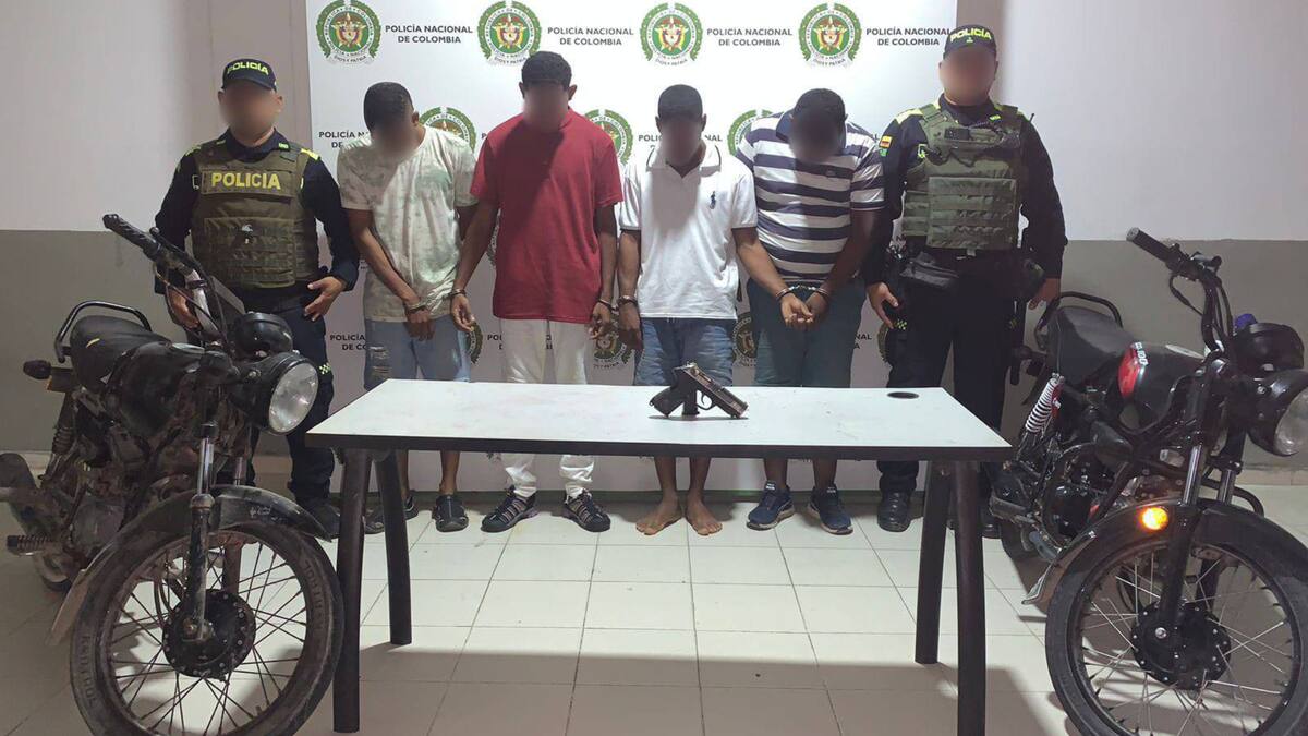 Los cuatro detenidos fueron puestos a disposición de la Fiscalía General de la Nación por el delito de hurto y porte ilegal de armas de fuego.