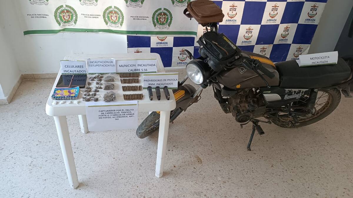 Les hallaron en su poder 50 cartuchos de munición calibre 5.56 sin número de serie, 3 proveedores para munición calibre 9mm, 9 bolsitas con marihuana empacada y 4 de bazuco listas para su comercialización. Además una libreta en la que tenían anotados nombres de presuntos clientes y la relación de los cobros de estupefacientes.