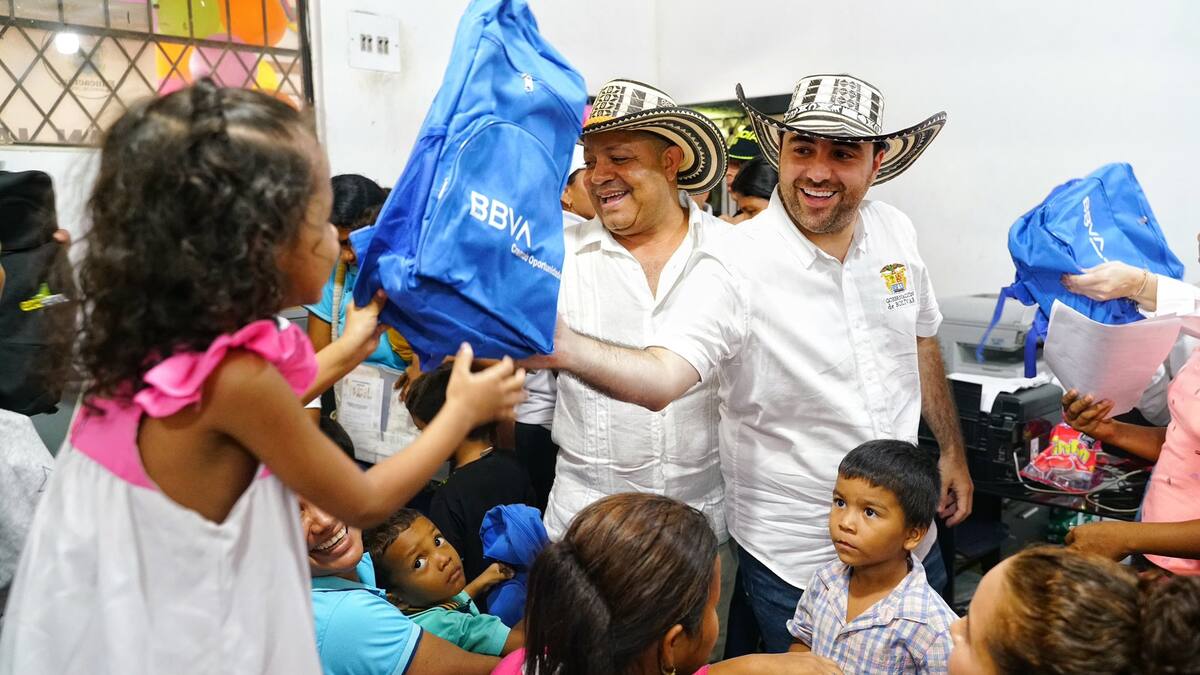 Asimismo, Arana acompañó la entrega de 200 kits escolares en la I.E Técnico Industrial de Turbana.